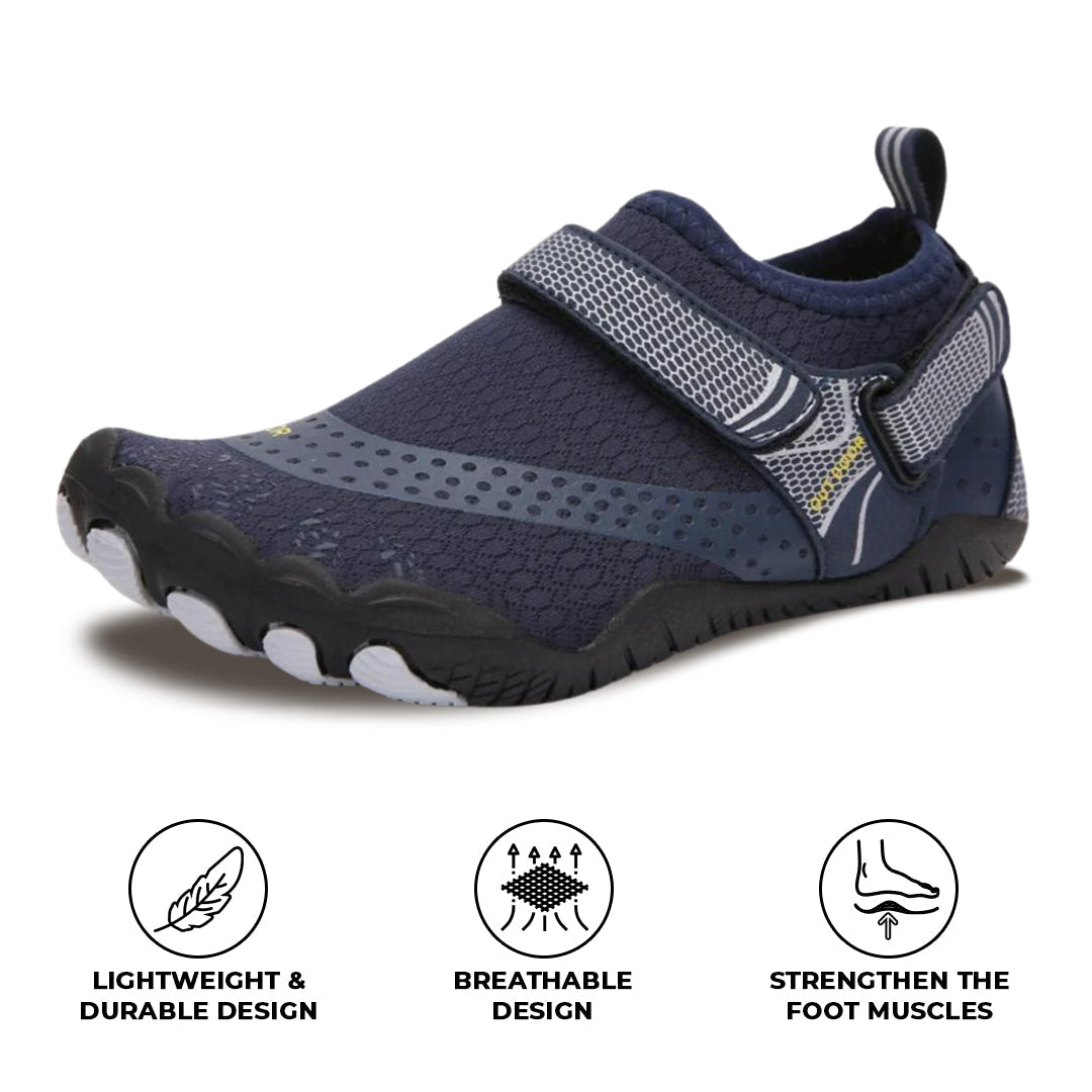 - Cushioned Sole: Supports arches and heels with foam padding.